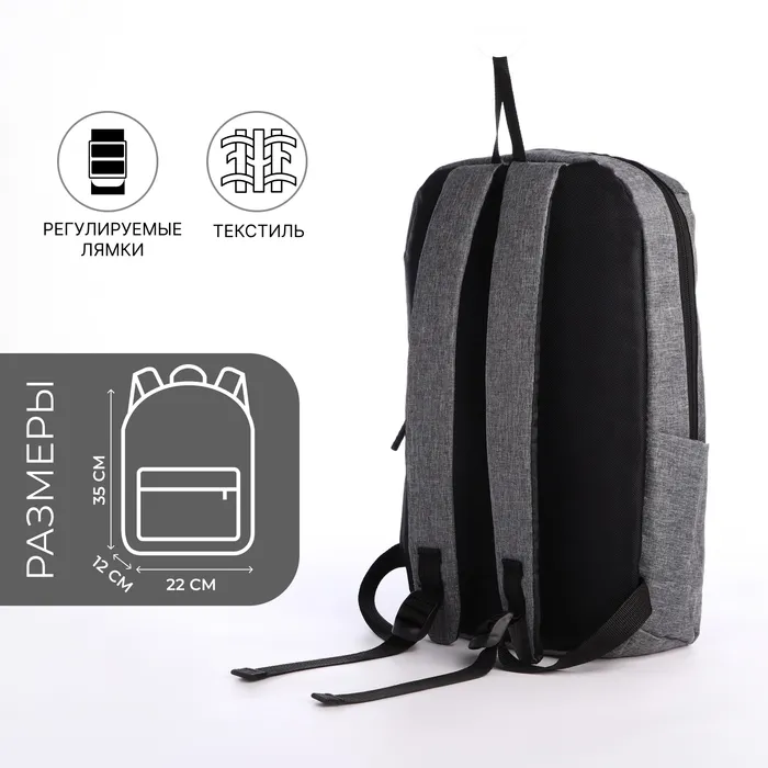 Рюкзак молодёжный на молнии, водонепроницаемый, 3 наружных кармана, цвет серый — Характеристики