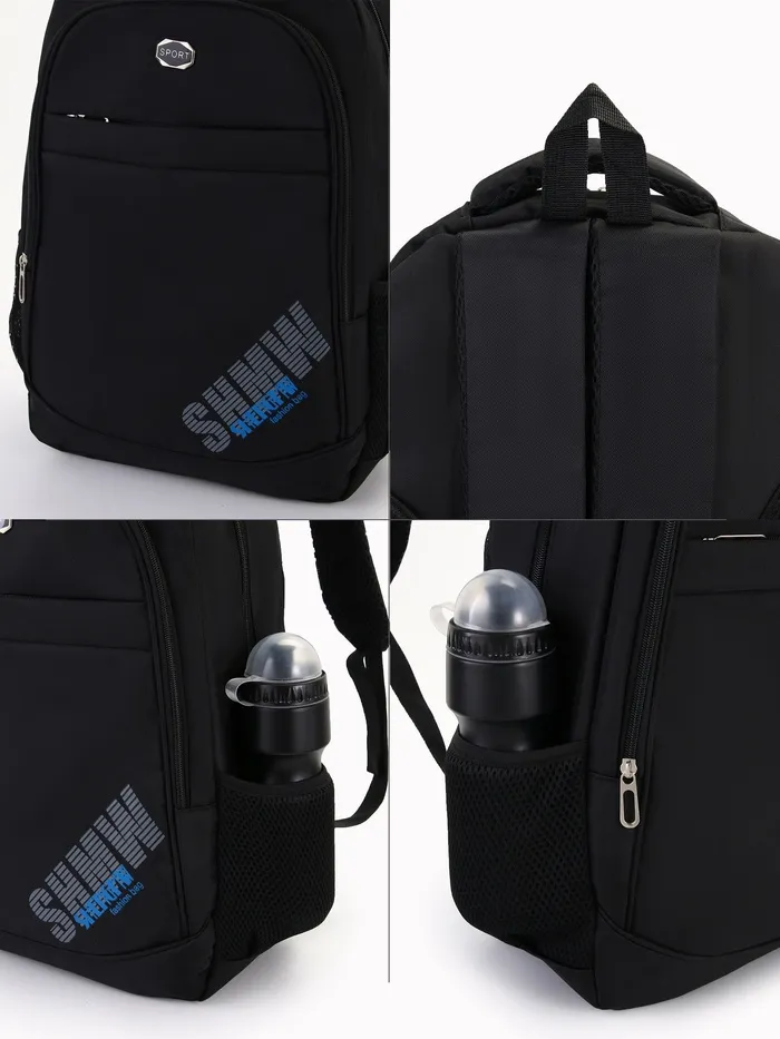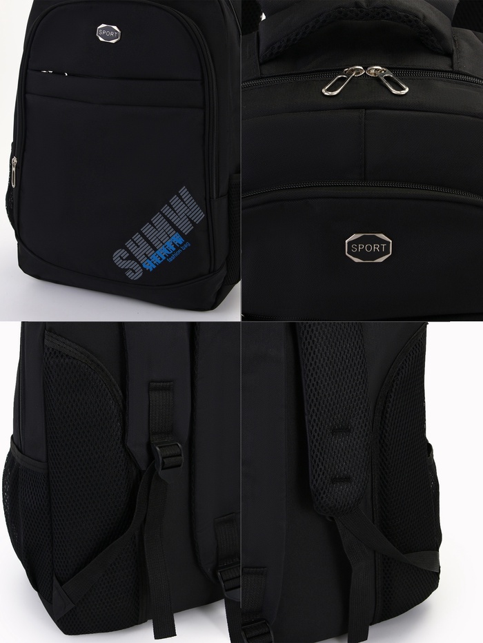 Рюкзак молодёжный на молниях, 4 кармана, размер 35×16×50 см, чёрный/синий — Характеристики