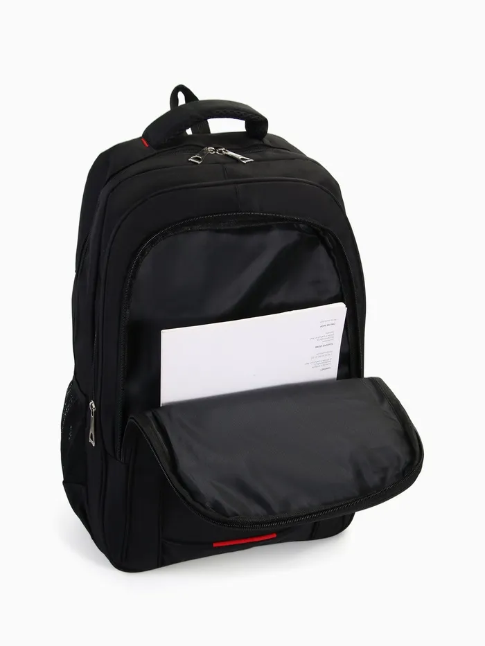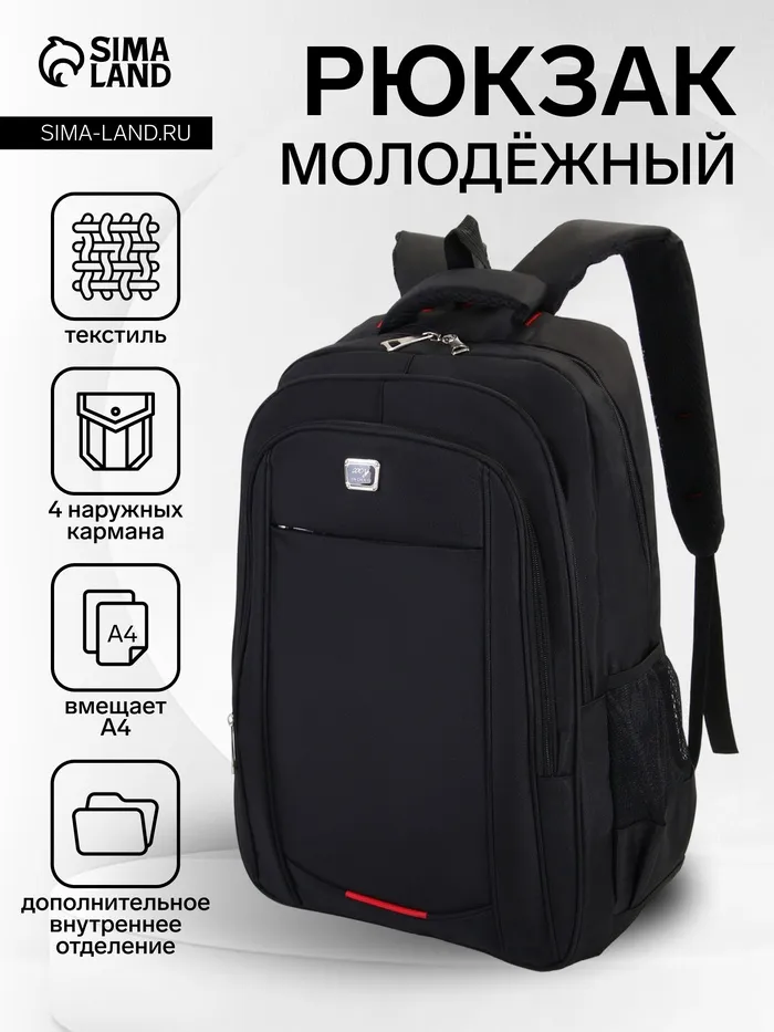 Рюкзак молодёжный на молниях, 4 наружных кармана, цвет чёрный/красный — Характеристики