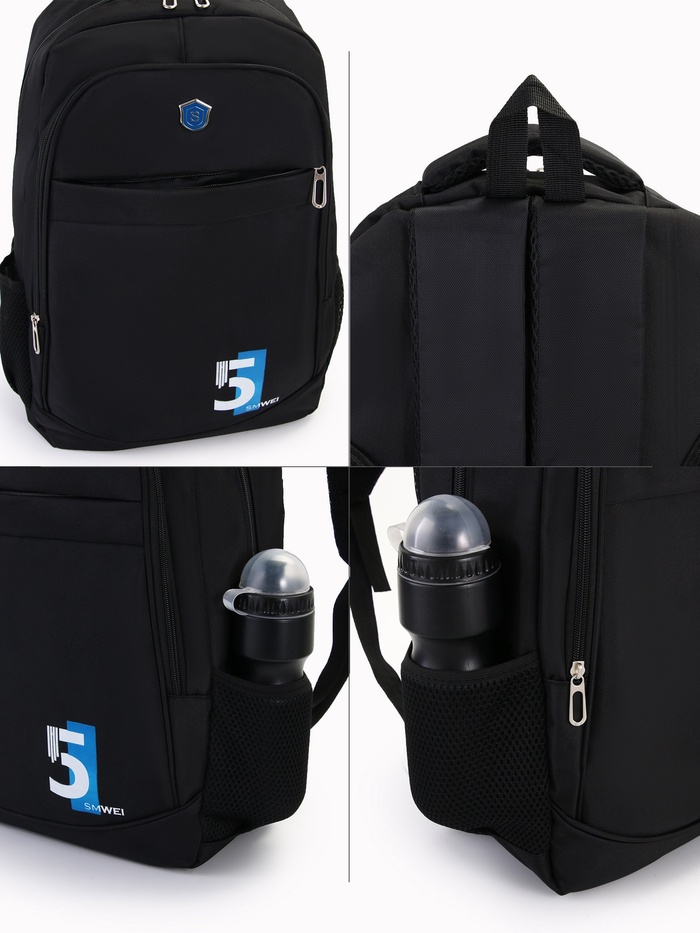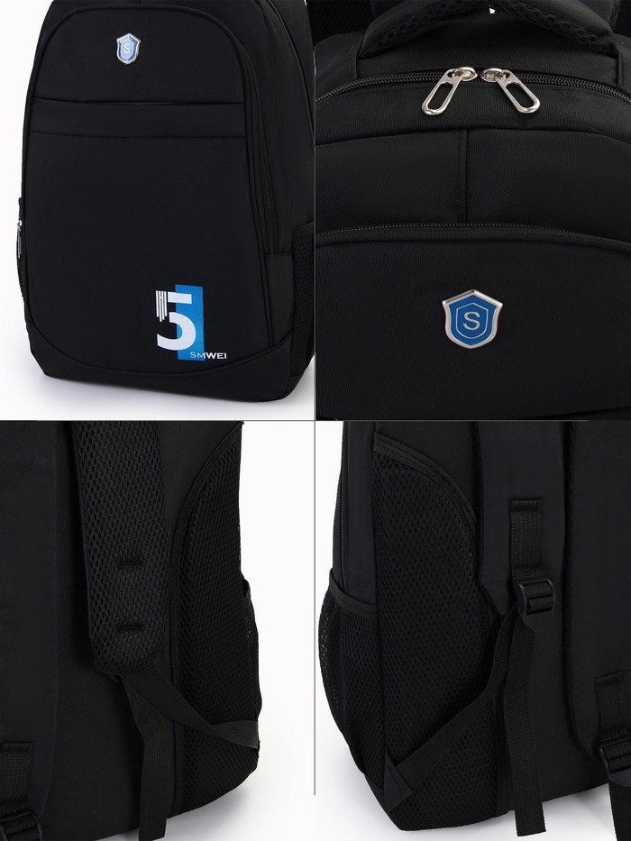 Рюкзак молодёжный на молниях, с принтом, 4 кармана, с принтом, размер 35×18×50 см, чёрный/синий — Характеристики