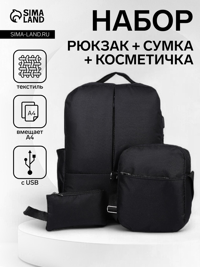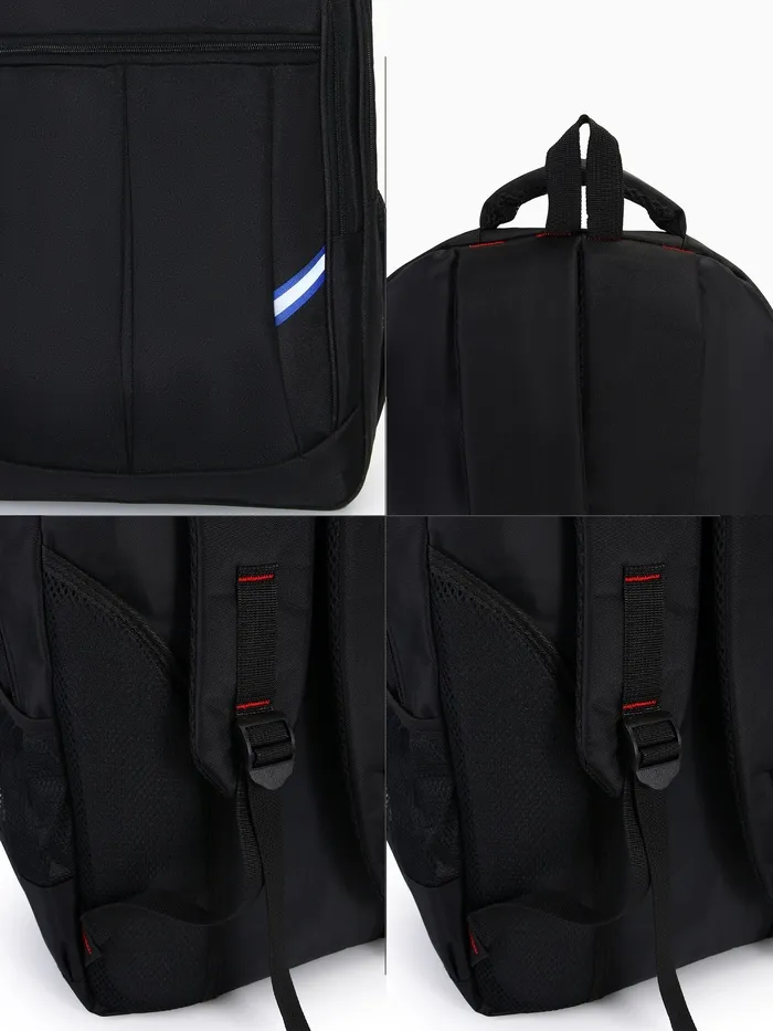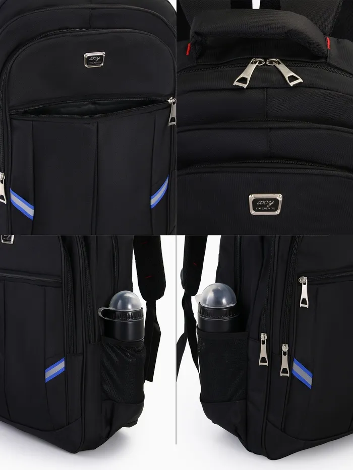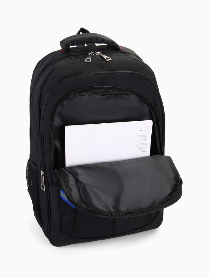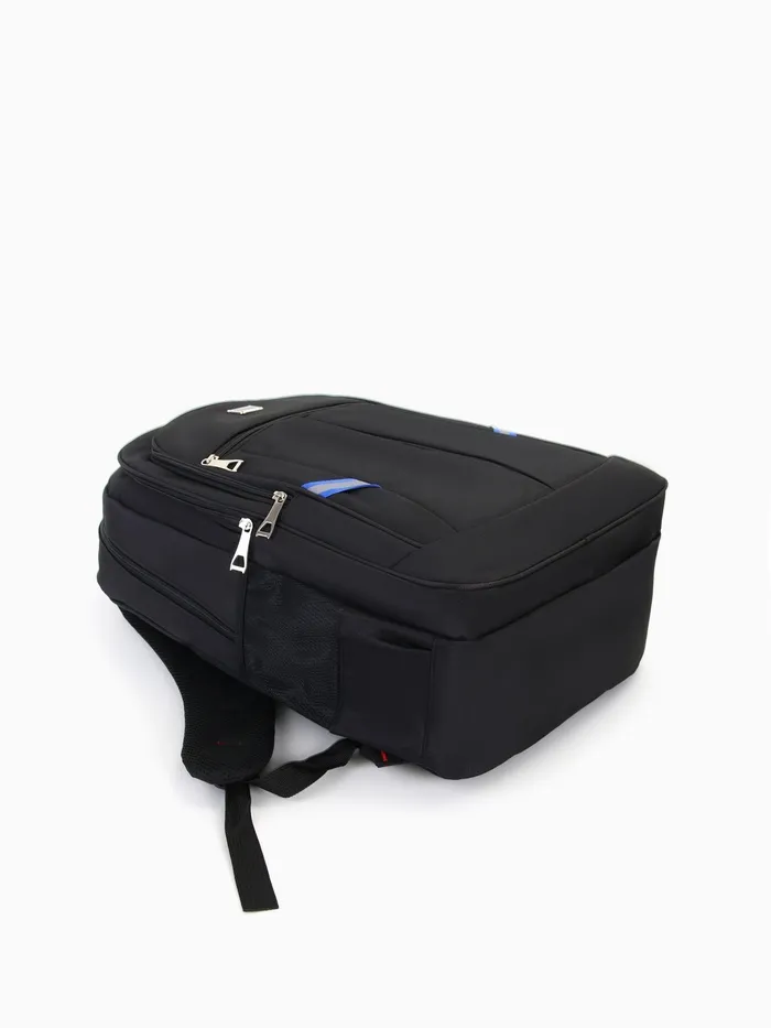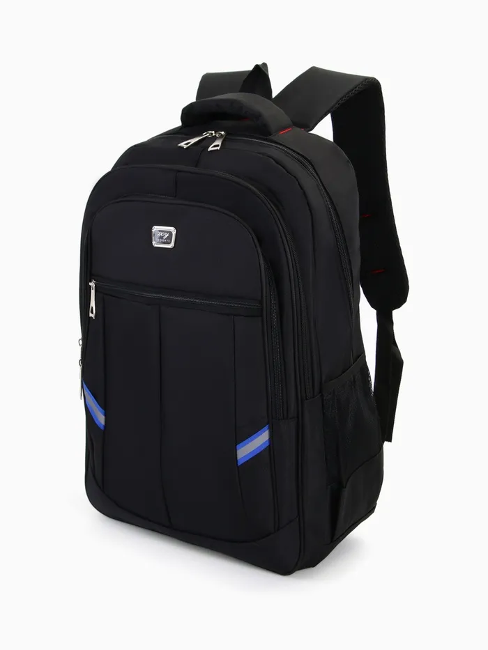 Рюкзак молодёжный на молниях, со светоотражающими элементами, 2 отдела на молнии, 4 кармана, размер 37×17×54 см, чёрный/синий — Характеристики
