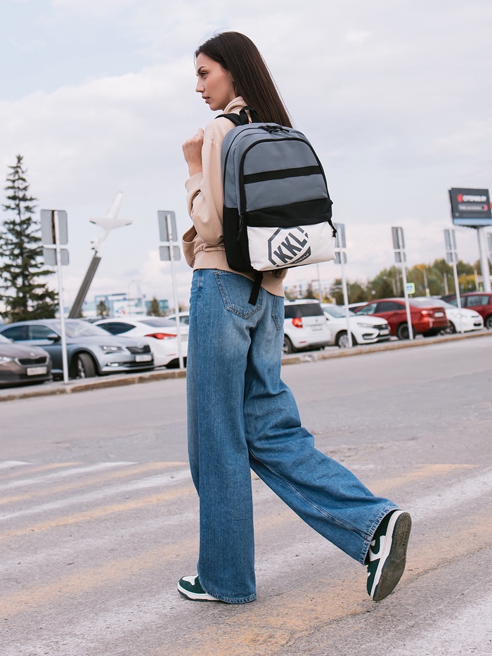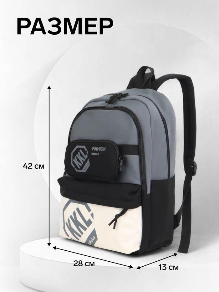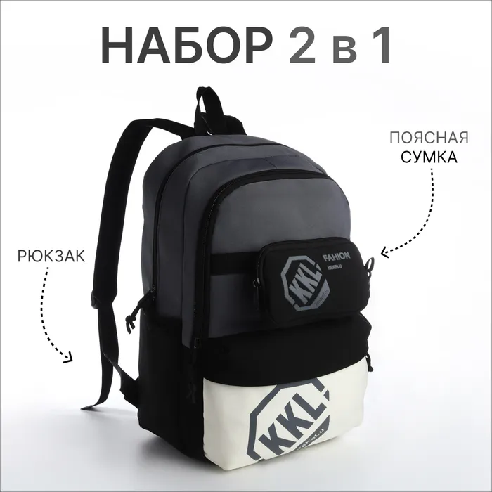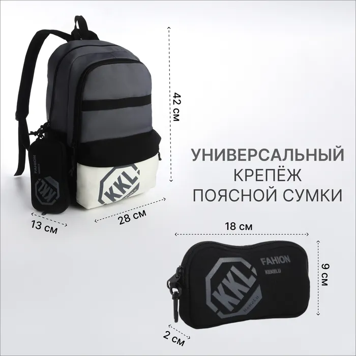 Рюкзак молодёжный с сумкой на ремень, с карманами, с принтом, размер 28×13×42 см, чёрный/серый — Характеристики