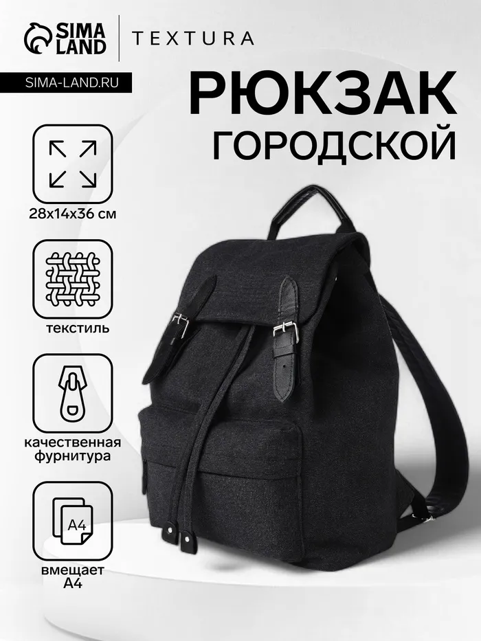 Рюкзак мужской на клапане TEXTURA, цвет чёрный — Характеристики