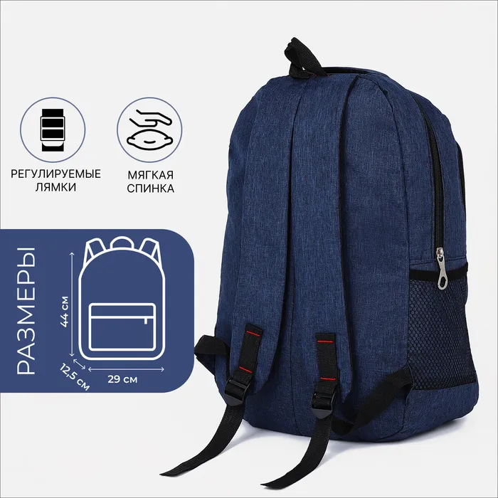 Рюкзак мужской на молнии, 3 наружных кармана, цвет синий — Характеристики