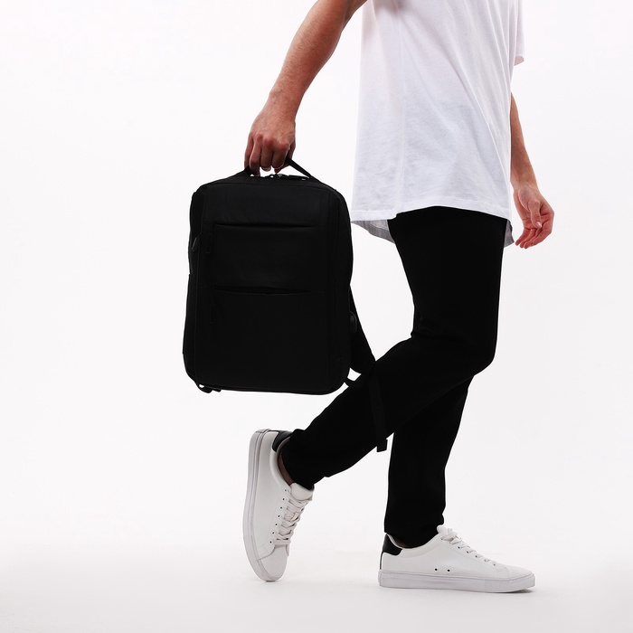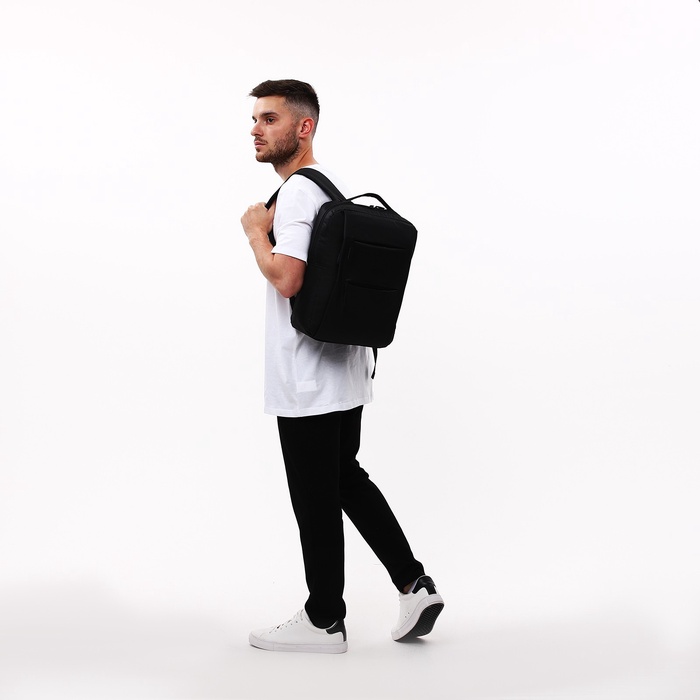 Рюкзак мужской на молнии, 4 наружных кармана, с USB, цвет чёрный — Характеристики
