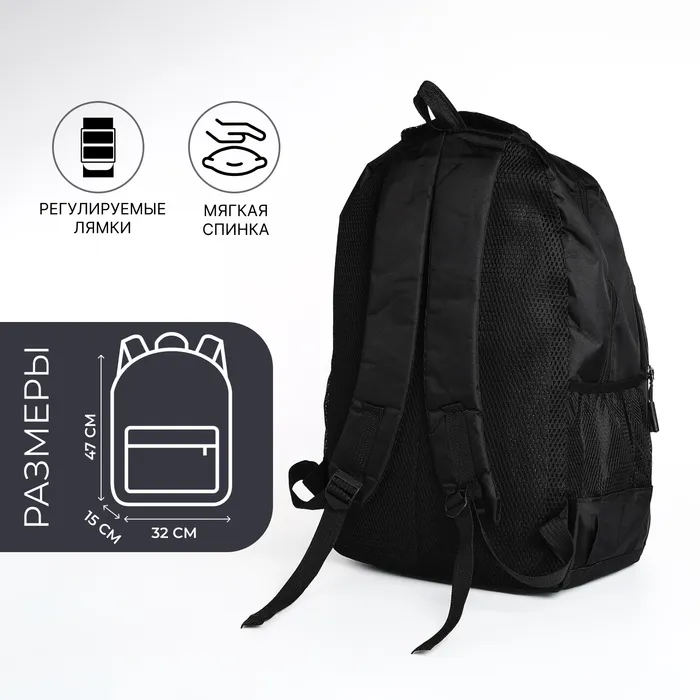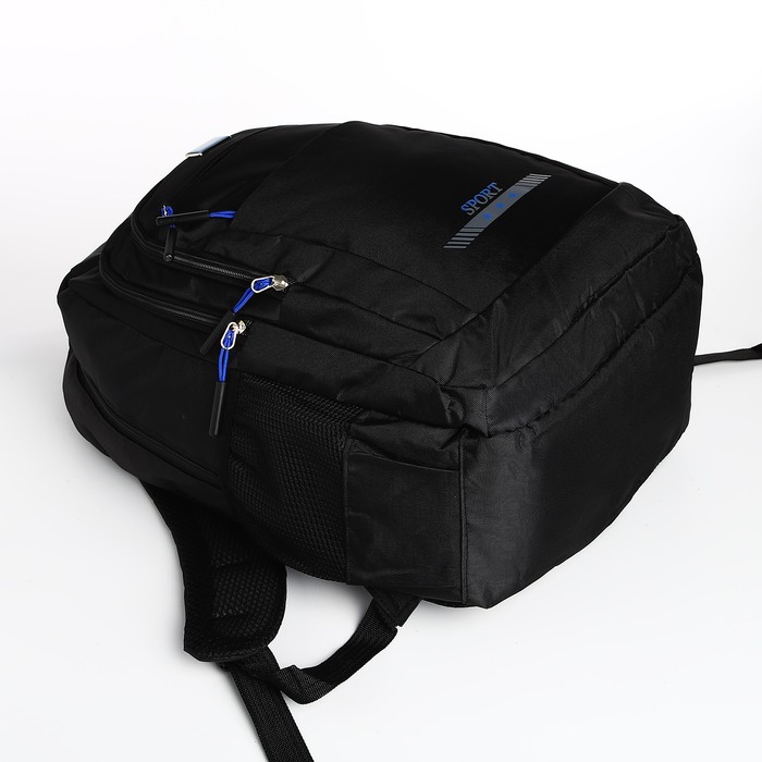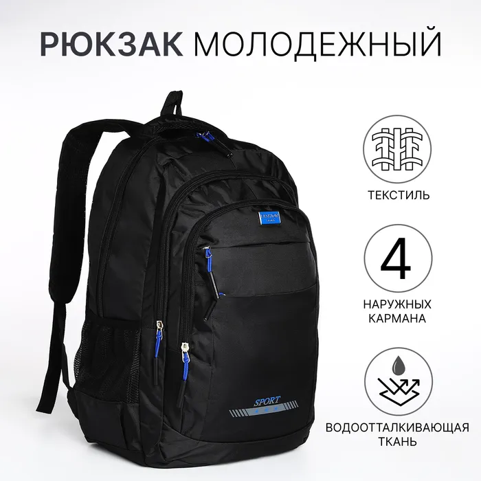 Рюкзак мужской на молнии, 4 наружных кармана, цвет чёрный/синий — Характеристики