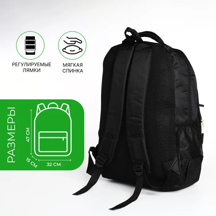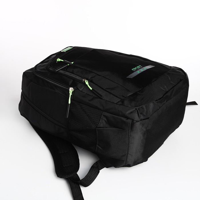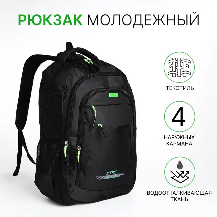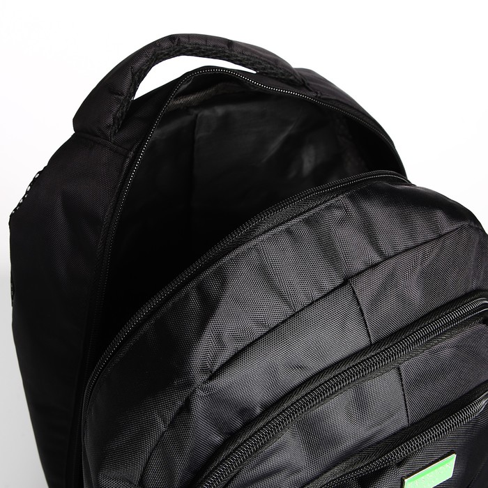 Рюкзак мужской на молнии, 4 наружных кармана, цвет чёрный/зелёный — Характеристики