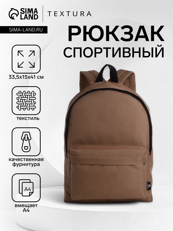 Рюкзак мужской на молнии, цвет серый — Характеристики