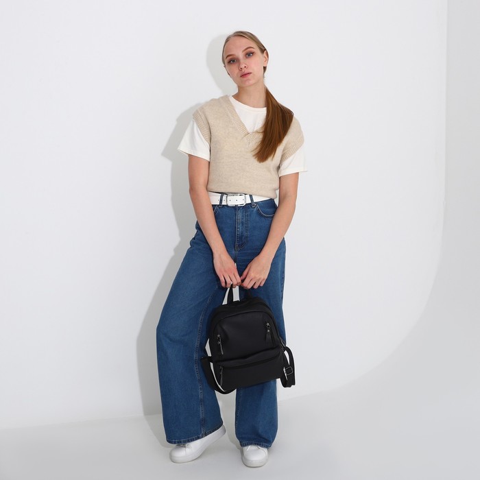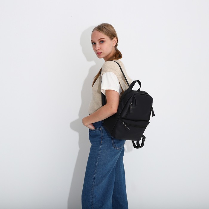 Рюкзак на молнии, 3 наружных кармана, чёрный — Характеристики