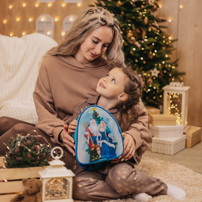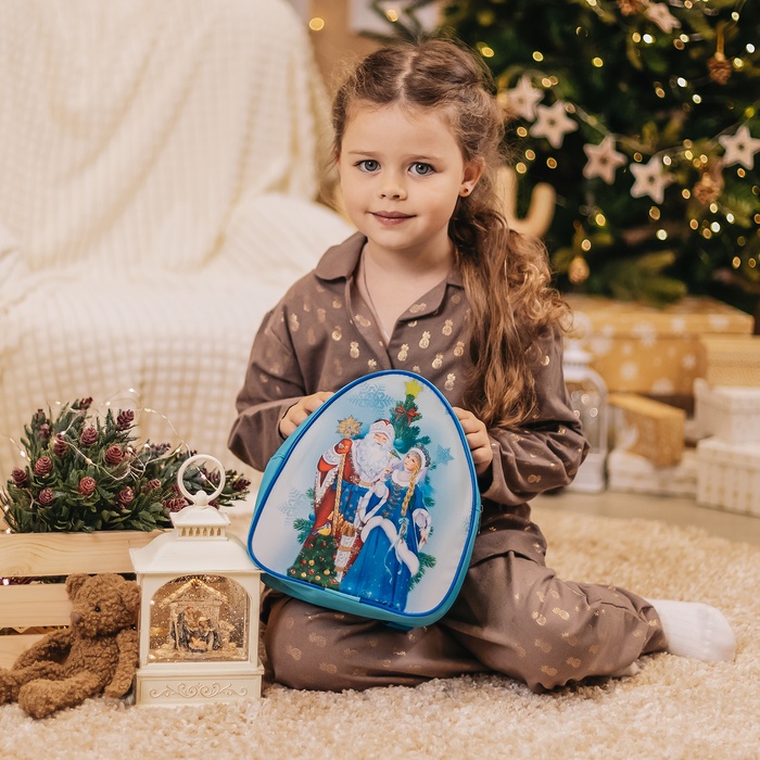 Рюкзак новогодний для подарков на молнии «Дед Мороз и Снегурочка», цвет голубой — Характеристики