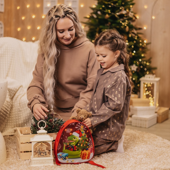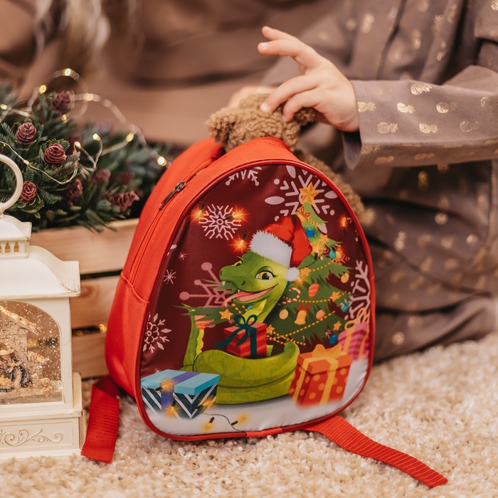 Красный новогодний рюкзак со змейкой создает праздничное настроение для маленьких исследователей. Яркий дизайн с символом года превращает обычные прогулки в волшебное приключение.