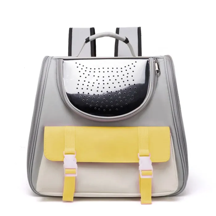 Рюкзак-переноска для кошек и собак, сетка с кошкой, оксфорд+ПВХ37 х 37 х 25 см, серый/жёлтый 105741
