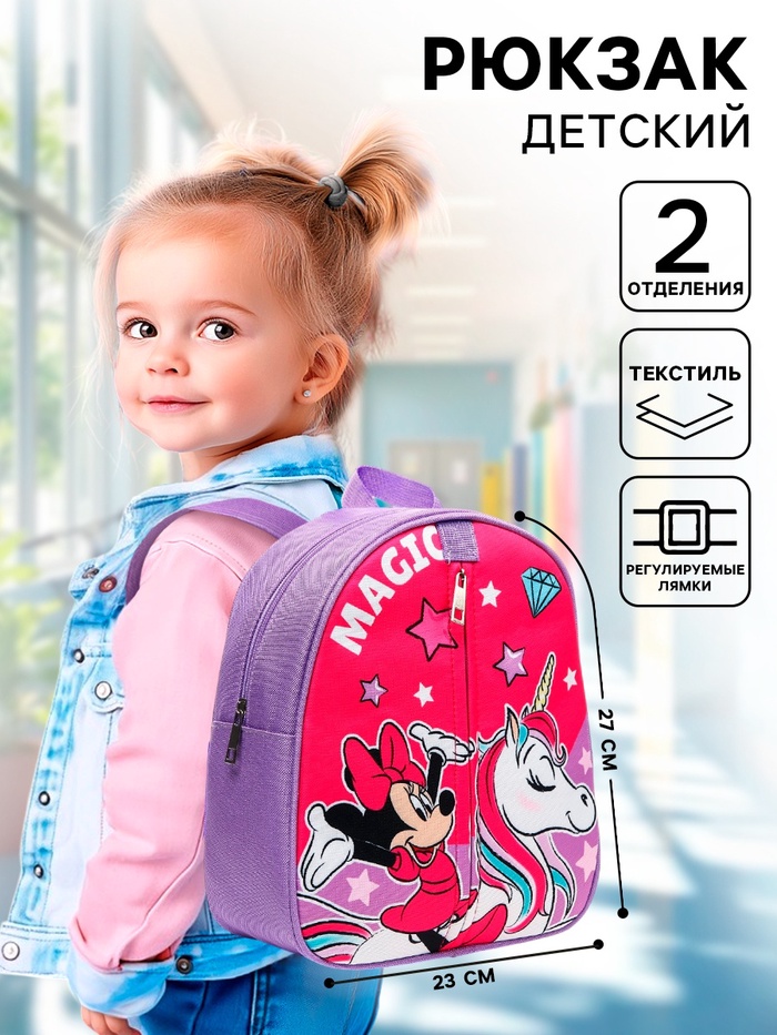 Рюкзак плюшевый на молнии, с карманом, 19×22 см «Мышонок», Микки Маус — Характеристики