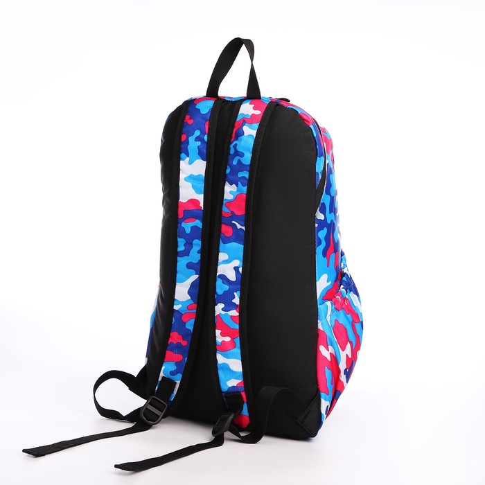 Походный рюкзак объемом 14 литров, идеально подходящий для девочек. Выполнен из стойкого к влаге текстиля, отличается ярким голубым камуфляжным рисунком. Надежная молния и две удобные лямки делают его незаменимым спутником для активного образа жизни. Идеален для учащихся 5-11 классов, универсальность и простота использования которого подчеркнут стиль и индивидуальность.