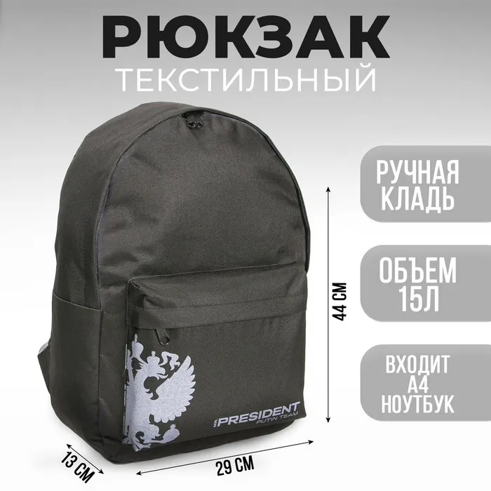 Рюкзак Putin team, 29 x 13 x 44 см, отд на молнии, н/карман, черный — Характеристики