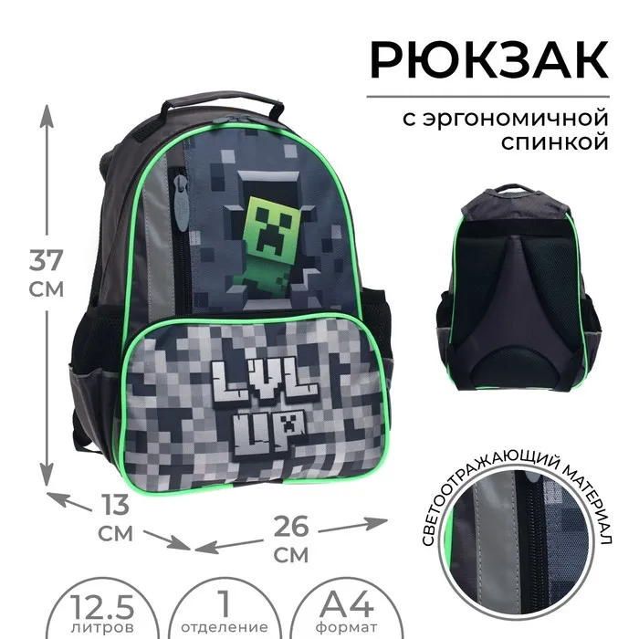 Рюкзак школьный, 37 х 26 х 13 см, эргономичная спинка, Calligrata ОРТ "Кубики" — Характеристики
