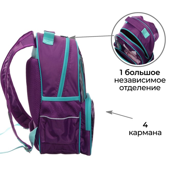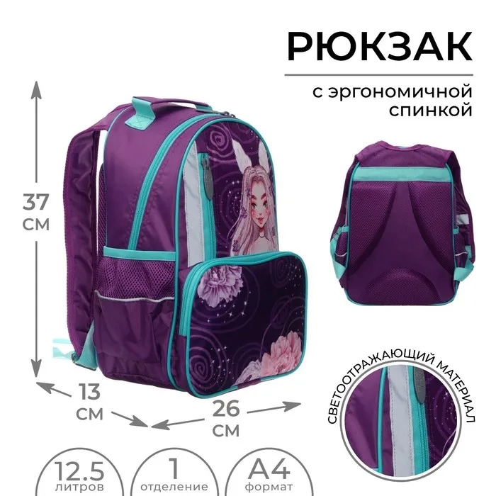 Рюкзак школьный, 37 х 26 х 13 см, эргономичная спинка, Calligrata ОРТ "Принцесса" — Характеристики
