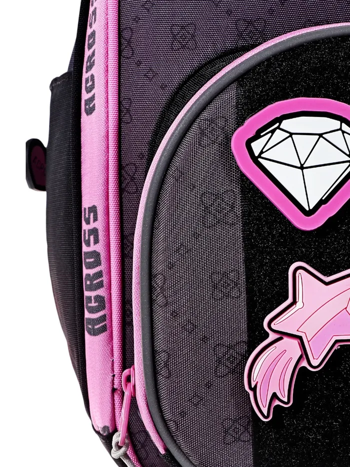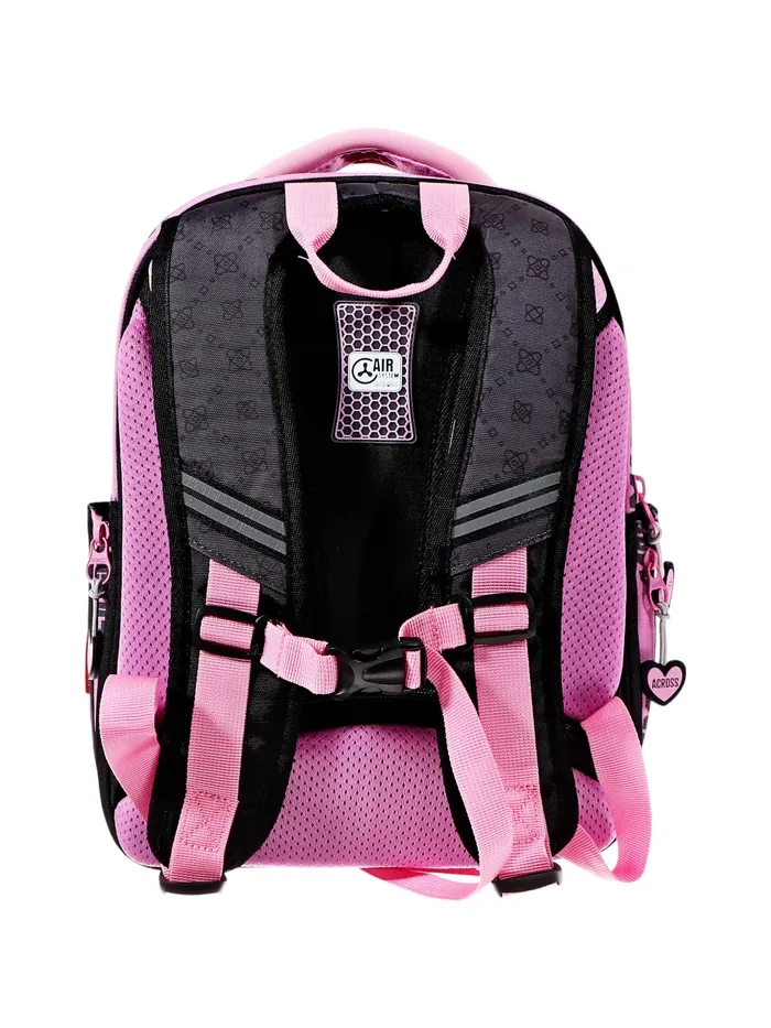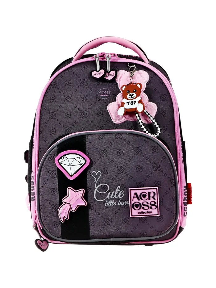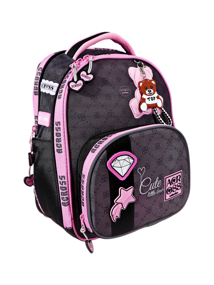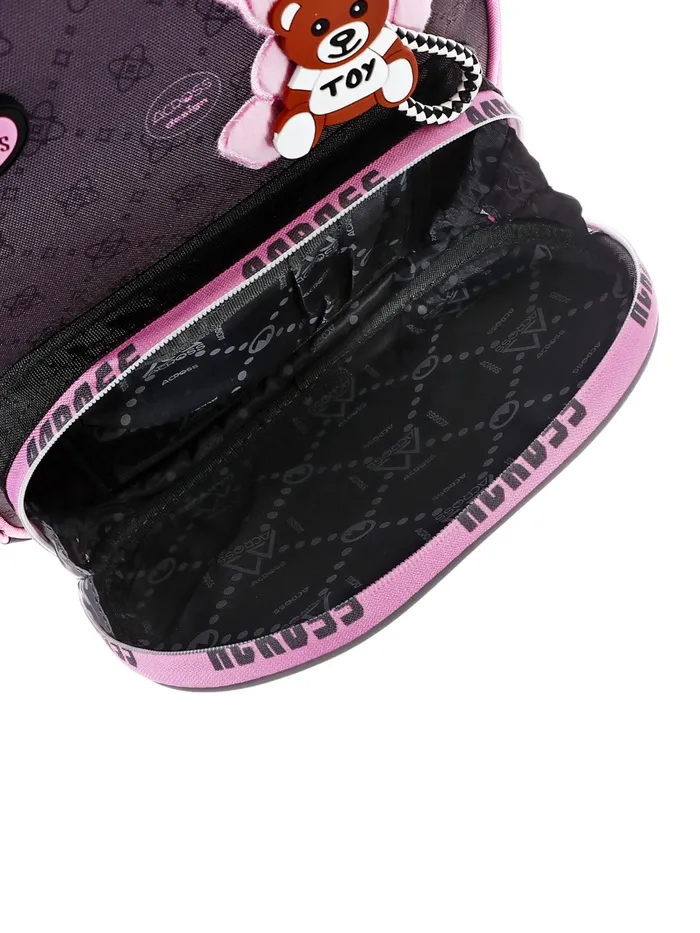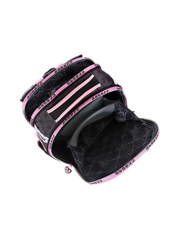 Рюкзак имеет 4 отделения , внутри 2 отделения формата А4, которые для удобства разделены между собой под учебники и тетради. Передний внешний кармана портфеля можно использовать как органайзер под канцелярию, что заменит школьнику пенал. Ранец школьный также оснащен боковыми открытыми карманами под воду, зонт. Рюкзак для начальной школы продуман до мелочей. С помощью декоративной подвески на бегунке молнии, дети смогут легко застегивать и расстегивать молнию в обе стороны