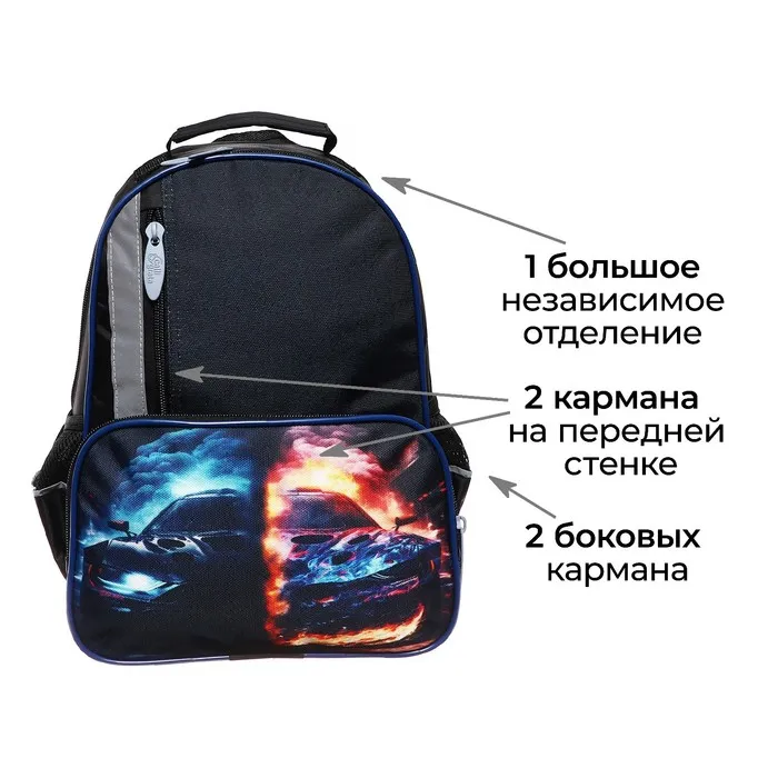 Рюкзак школьный, 37×26×13 см, эргономичная спинка, Calligrata TOP «Тачка в огне» — Характеристики