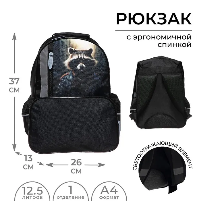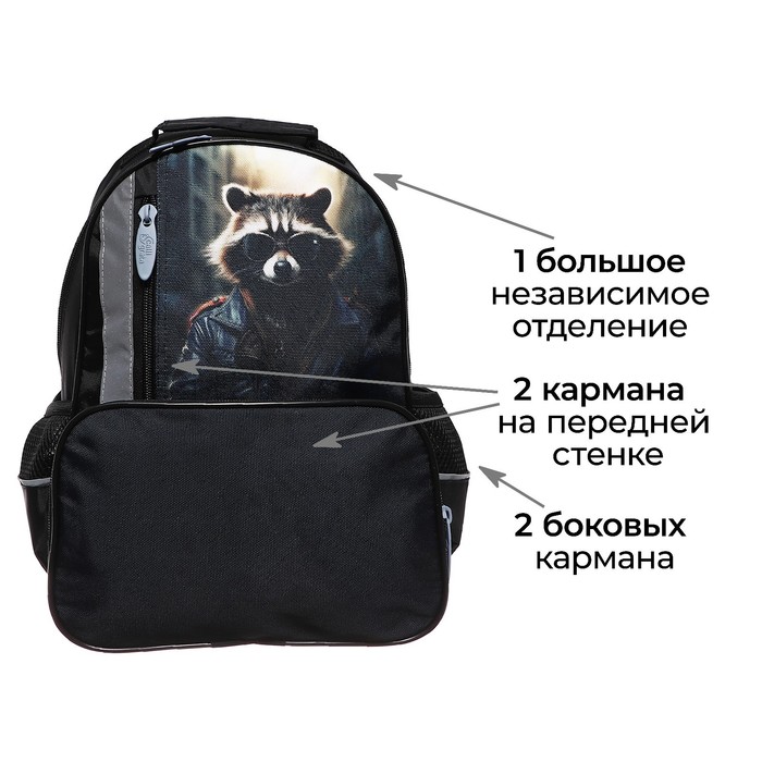 Рюкзак школьный, 37×26×13 см, эргономичная спинка, «Енот» — Характеристики