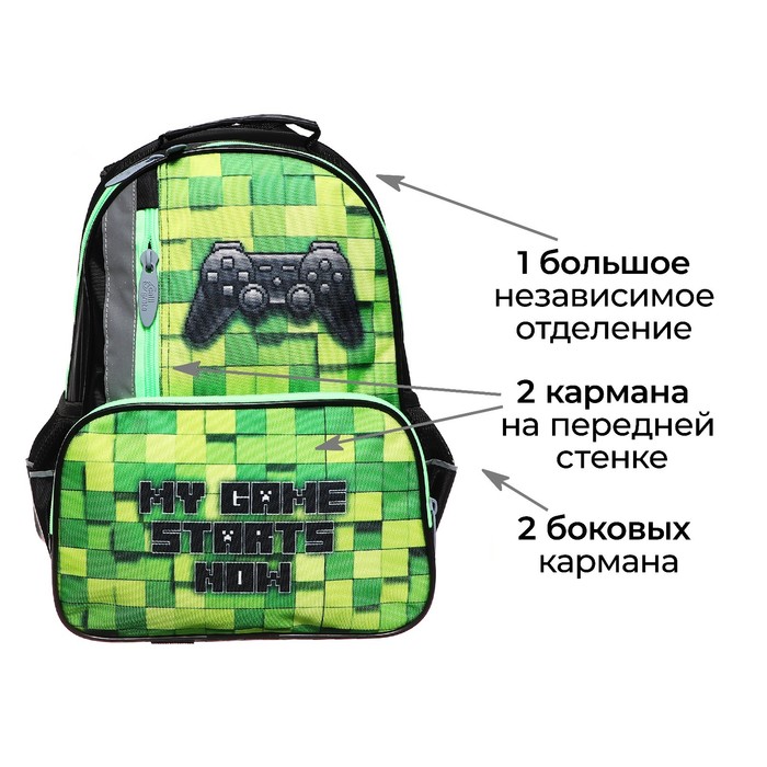 Рюкзак школьный, 37×26×13 см, эргономичная спинка, «Гейм» — Характеристики