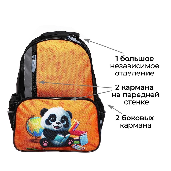 Рюкзак школьный, 37×26×13 см, эргономичная спинка, «Панда» — Характеристики