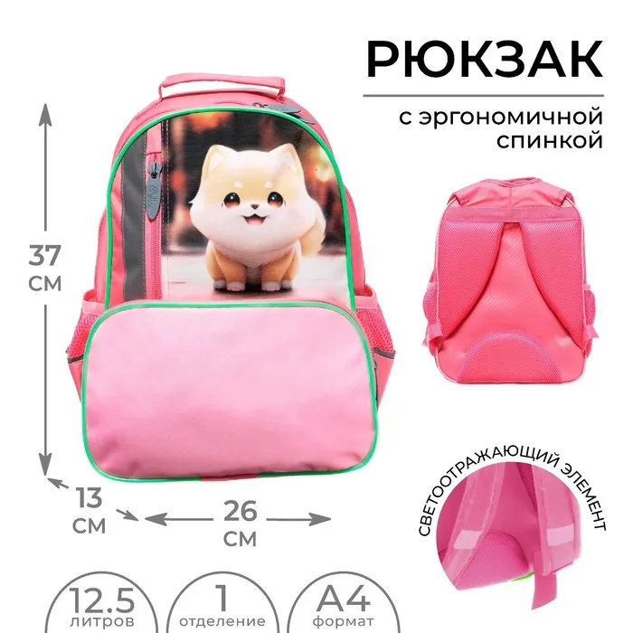 Рюкзак школьный, 37×26×13 см, эргономичная спинка, «Сиба» — Характеристики