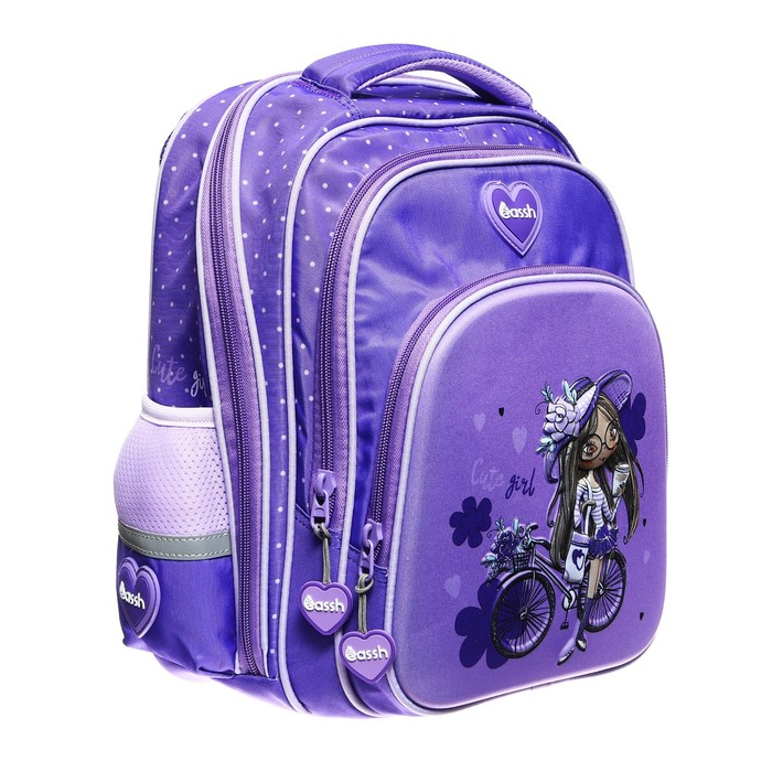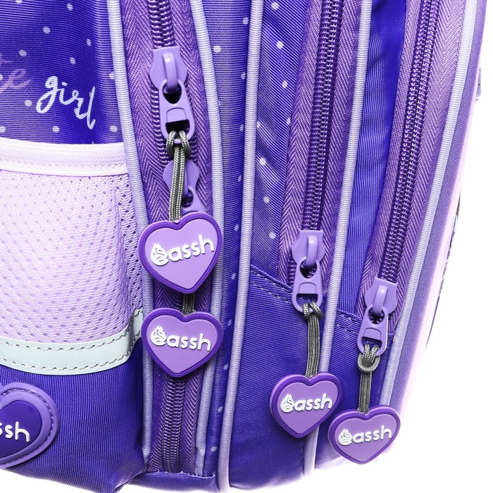 В рюкзаке предусмотрено вместительное отделение для книг, тетрадей и других школьных принадлежностей, а также карман для бутылки с водой и маленькие карманы для аксессуаров. Светоотражающие элементы на рюкзаке обеспечивают дополнительную безопасность для детей в темное время суток.