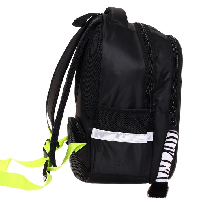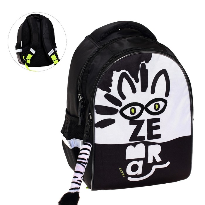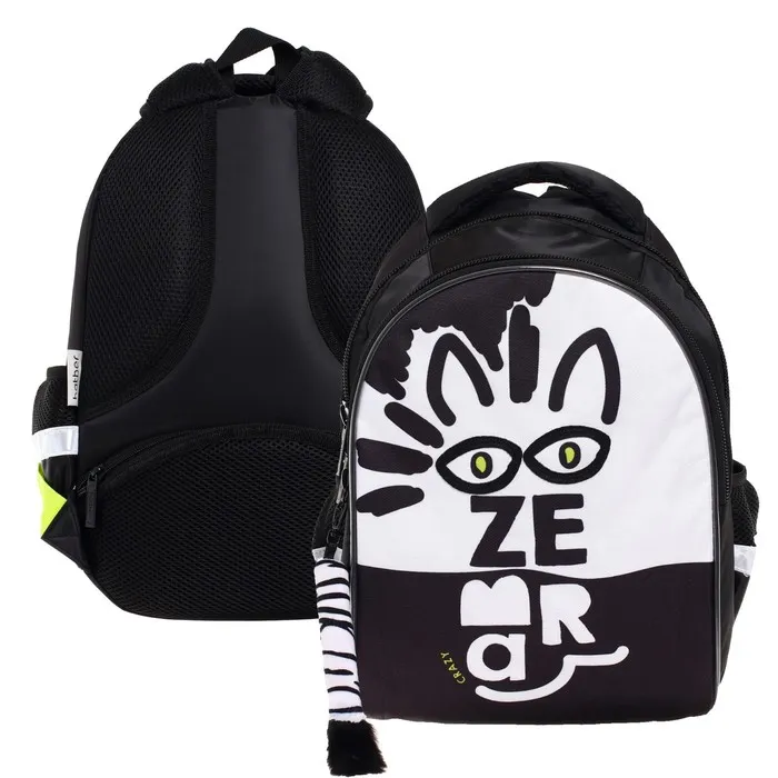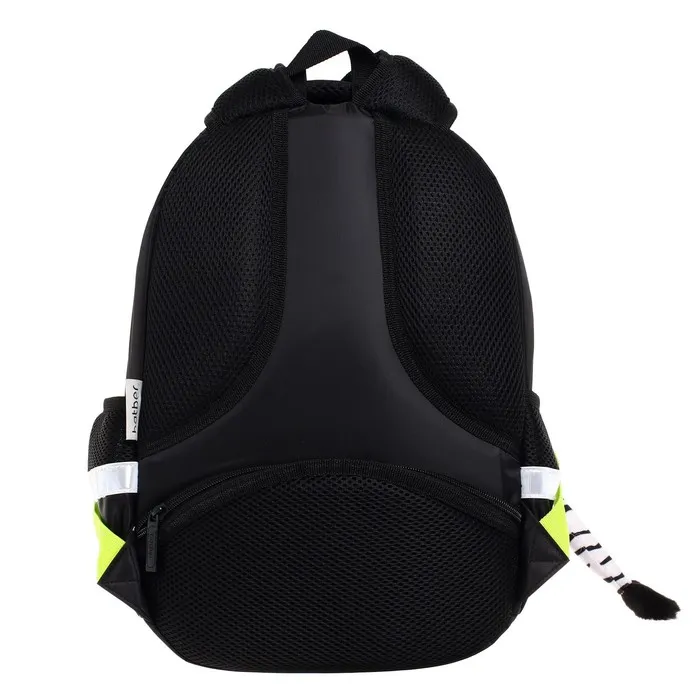 Эргономичная вентилируемая спинка с мягкими вставками, регулируемые лямки, усиленное дно, светоотражающие элементы,крупные удобные молнии, мягкая ручка для переноса и ручка-петля для подвеса. Нагрудная стяжка позволит плотно закрепить ранец на спине школьника. Два вместительных отделения, внутри основного – карман-перегородка, во втором отделении – функциональный органайзер , включающий два кармана на молнии для мелочей и мобильного телефона, отстегивающийся карабин для ключей. Боковые карманы для бутылки с водой или термоса. На спинке имеется потайной карман на молнии – необходимая опция для каждого школьника. Светоотражающие элементы на лямках, передней и боковых частях рюкзака обеспечивают безопасность ребенка на дороге.