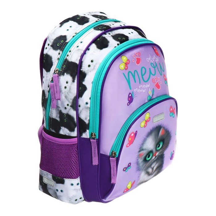 Рюкзак школьный 38×27×17, эргономичная спинка, deVENTE Attomex Basic, Meow Cat, сиреневый, 7033438 — Характеристики