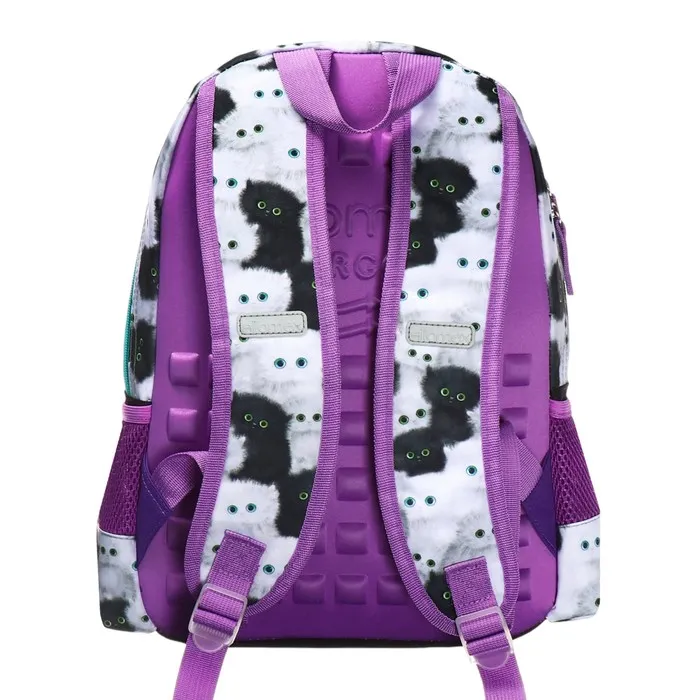Рюкзак "Attomex. Basic. Meow Cat" школьный 38x27x17 см (14 л) вес 450 г, 1 отделение на молнии, 2 передних кармана на молнии и 2 боковых, эргономичная формоустойчивая спинка с массажными точками и каналами для вентиляции и мягкие S-образные регулируемые лямки, светоотражающие элементы.