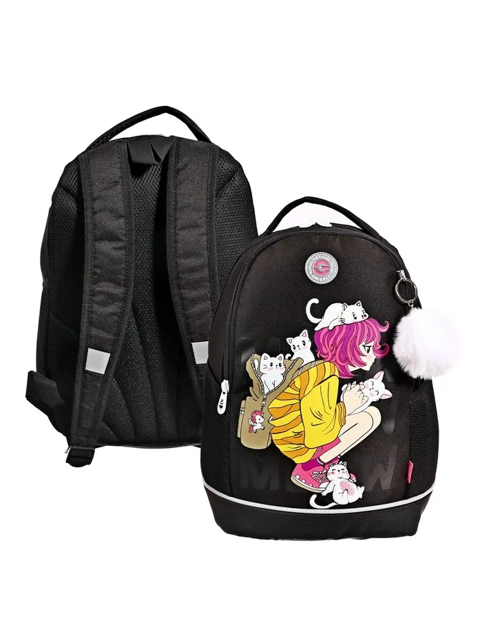 Рюкзак школьный, 38×28×18 см, Grizzly, эргономичная спинка, чёрный, RG-563-3_1 — Характеристики