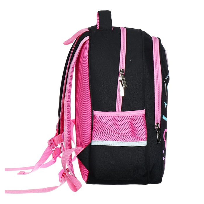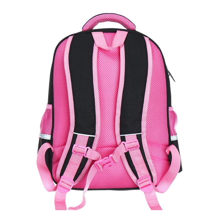Легкий вместительный рюкзак для начальной школы (легко входит папка на молнии А4), мягкая вентилируемая спинка, 2 отделения (основное с плавающей перегородкой), большой передний карман на молнии, глубокие боковые карманы, уплотненная мягкая ручка и петля для подвеса, нагрудная стяжка, светоотражающие элементы со всех сторон, уплотненное дно, вентилируемая мягкая спинка. Вес – 600 г.Размер: 38х29х14,5см