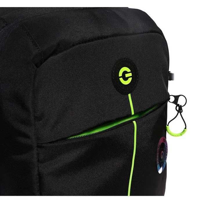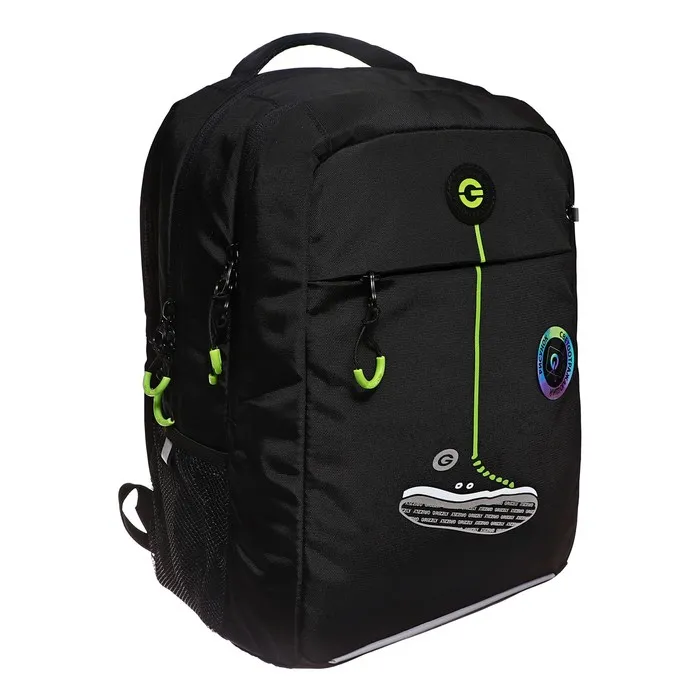 Эта модель сумки с твердым дном выполнена из прочного плотного полиэстера, поэтому рюкзак отлично держит форму и не перекашивается со временем и от тяжестей. Мембранные симметричные накладки анатомической спинки и нагрудная стяжка со свистком поддерживают позвоночник в правильном положении - равномернее распределяется вес, снижается нагрузка на поясничный отдел, осанка остаётся ровной. Благодаря широким регулируемым лямкам спина и плечи школьника не будут уставать.