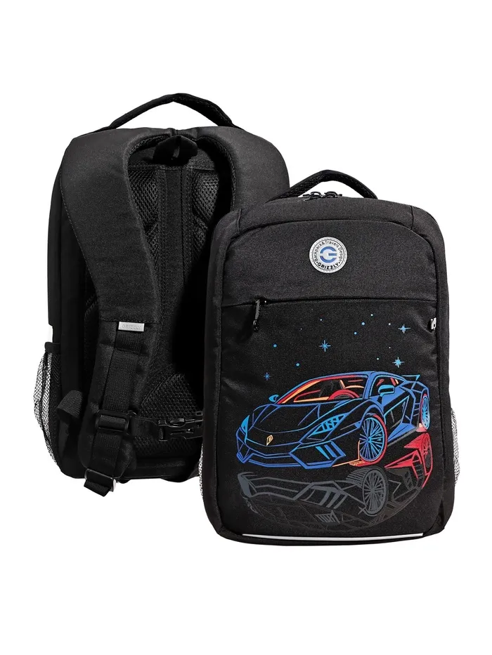 Рюкзак школьный, 39×26×19 см, Grizzly, эргономичная спинка, отделение для ноутбука, чёрный, RB-556-2_1 — Характеристики