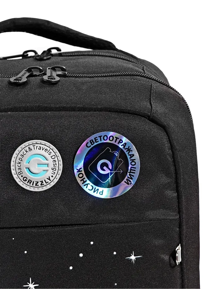 Рюкзак школьный, 39×26×19 см, Grizzly, эргономичная спинка, отделение для ноутбука, чёрный, RB-556-2_2 — Характеристики