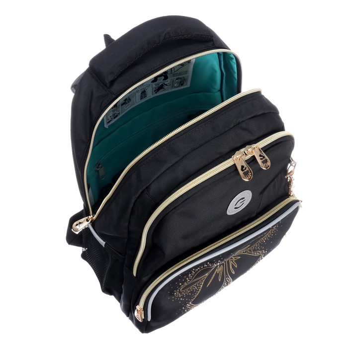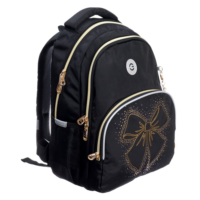 Рюкзак школьный, 40×27×20 см, Grizzly, эргономичная спинка, отделение для ноутбука, чёрный — Характеристики
