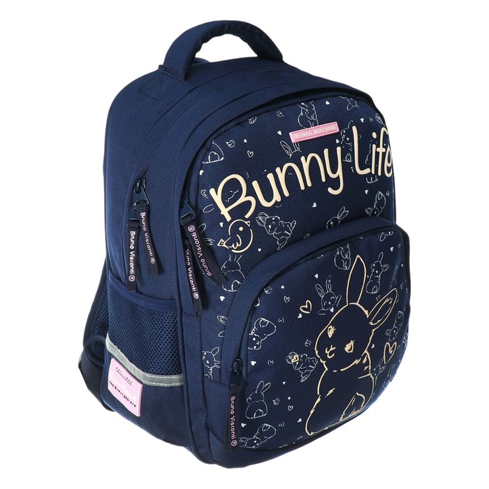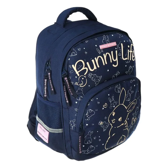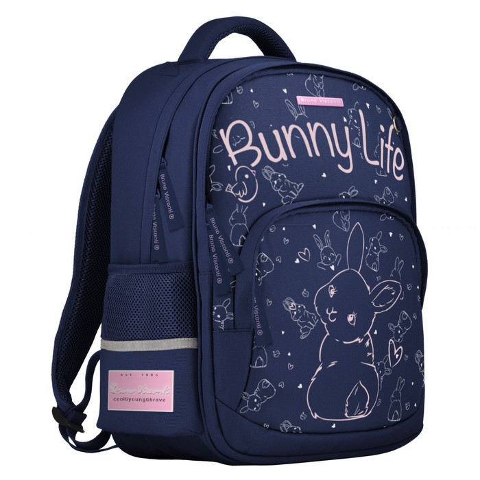Рюкзак BrunoVisconti® классический синий с эргономичной спинкой «BUNNY LIFE». Рюкзак школьный серии Junior «BUNNY LIFE» ТМ BRUNO VISCONTI отличается мягкими боковыми и передними стенками при эргономичной посадке. Для его производства использовалась ткань premium качества: водонепроницаемая, морозостойкая, с повышенной износостойкостью, грязеотталкивающая плотностью 900 DEN. Благодаря сложнейшим современным технологиям нанесения на ткань рюкзак украшает авторский дизайн, соответствующий последним трендам. Плотная фирменная подкладка BRUNO VISCONTI идеально сочетается с дизайном и цветом самого рюкзака. Двунаправленные реверсивные надежные 8-мм молнии с 5-см пуллером на замках позволяют легко открывать и закрывать рюкзак. Вместительный рюкзак имеет большое отделение для тетрадей и учебников с потайным карманом и отделение для тетрадей с органайзером для канцтоваров.