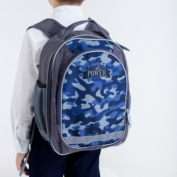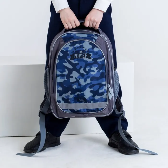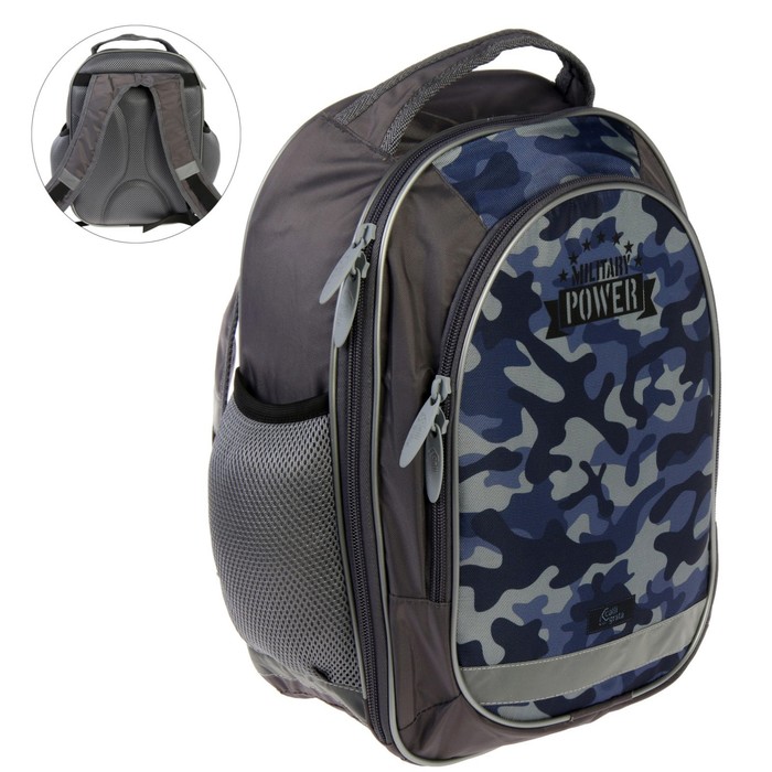 Рюкзак школьный Calligrata "Милитари", 37 х 27 х 16 см, эргономичная спинка, серый — Характеристики