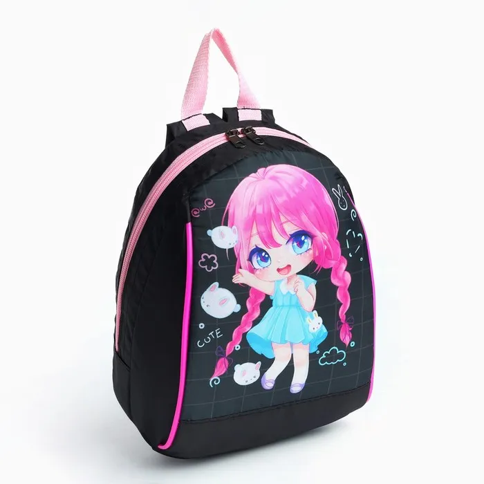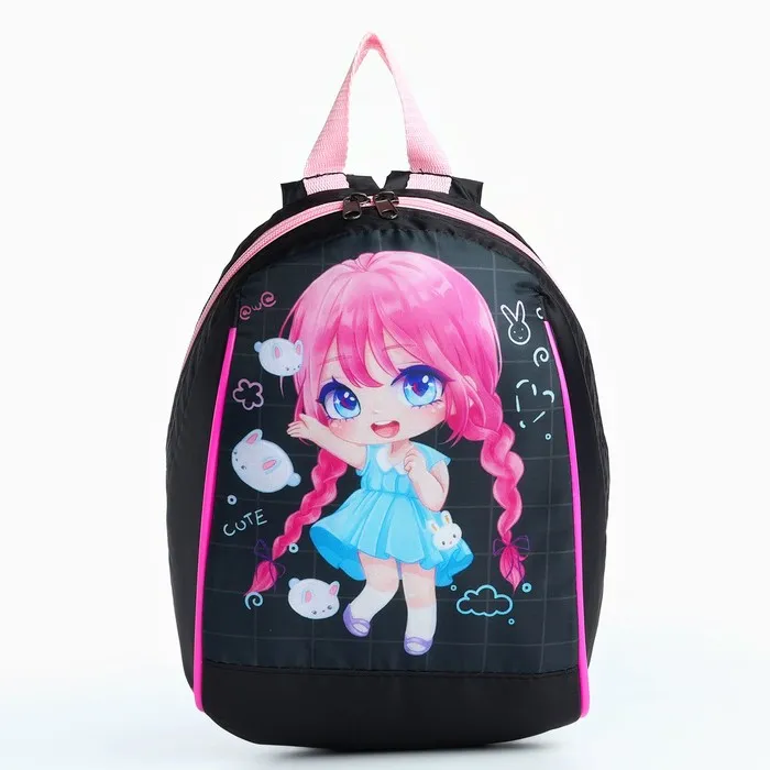 Рюкзак школьный детский для девочки «Аниме», 20×13×26, на молнии, чёрный — Характеристики