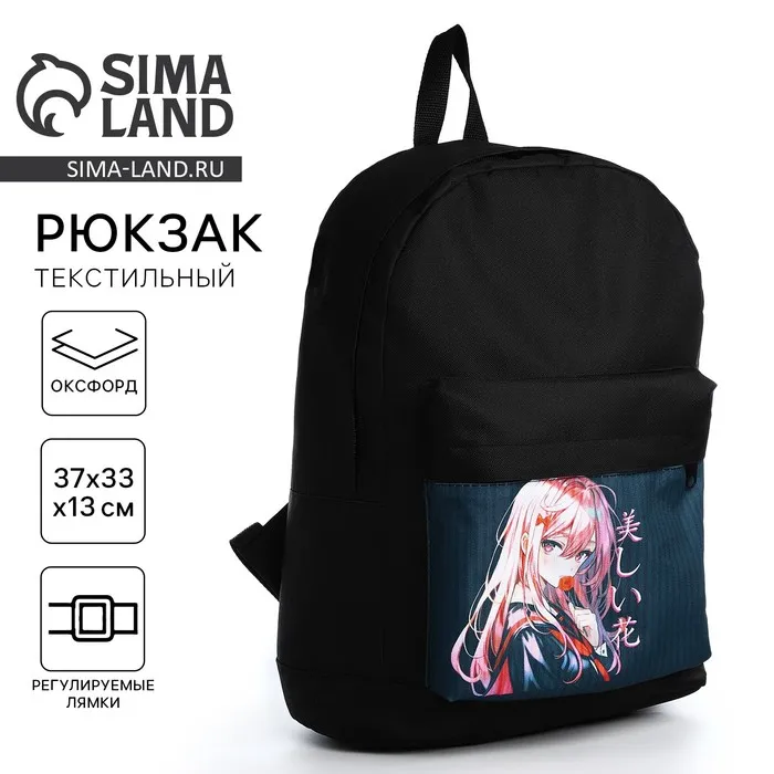 Рюкзак школьный детский для девочки «Аниме», 33×13×37, отдел на молнии, карман, чёрный — Характеристики