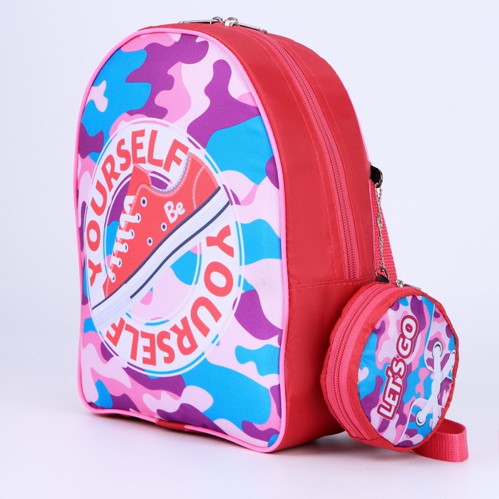 Рюкзак школьный детский для девочки «Кеды», 24.5×10×30, на молнии, розовый, с кошельком — Характеристики