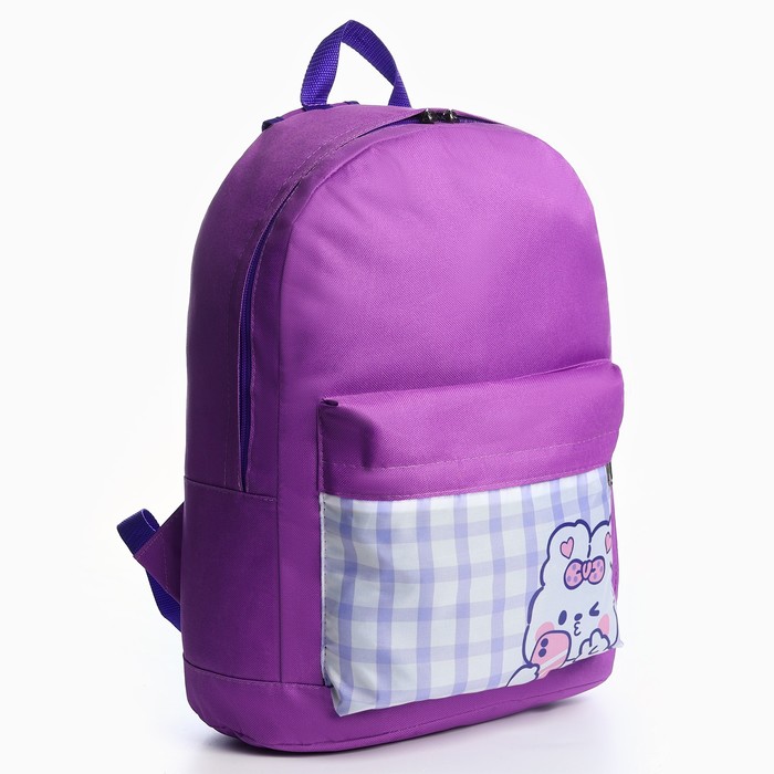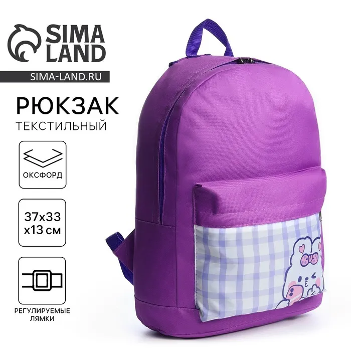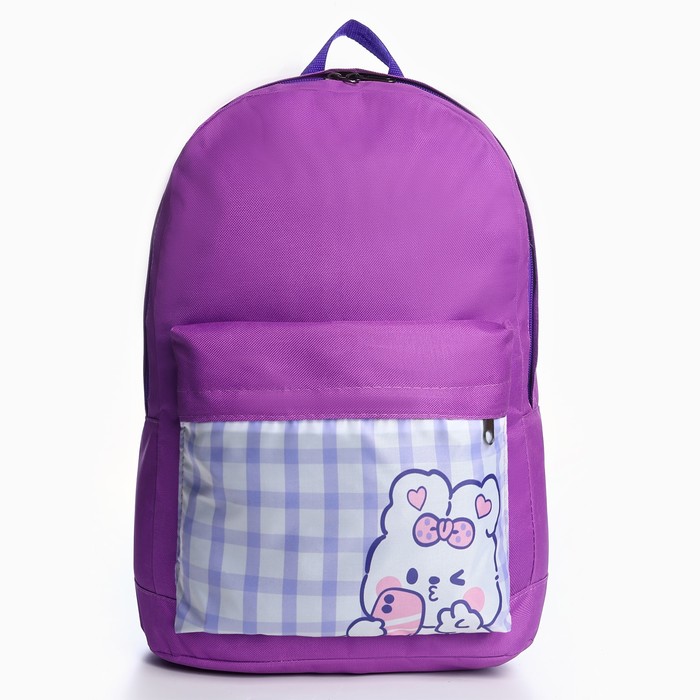 Рюкзак школьный детский для девочки «Зайчик», 33×13×37, отдел на молнии, карман, фиолетовый — Характеристики
