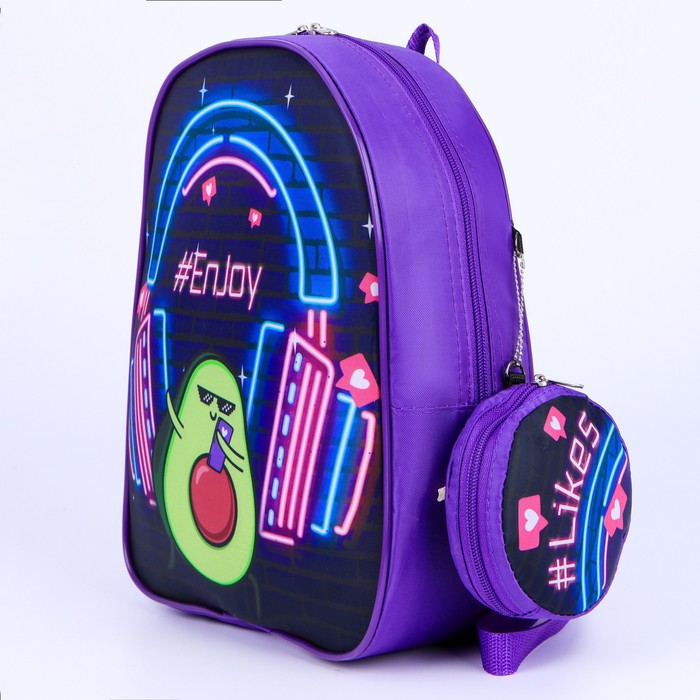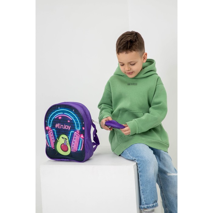Рюкзак школьный детский для мальчика «Авокадо», 24,5х10х30 , отд на молнии, фиолетовый, с кошельком — Характеристики