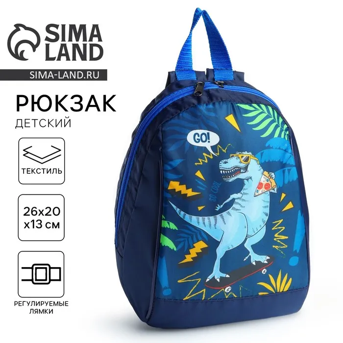 Рюкзак школьный детский для мальчика «Динозавр», 20×13×26, на молнии, синий — Характеристики