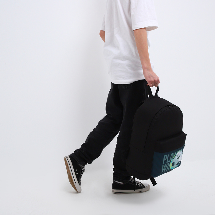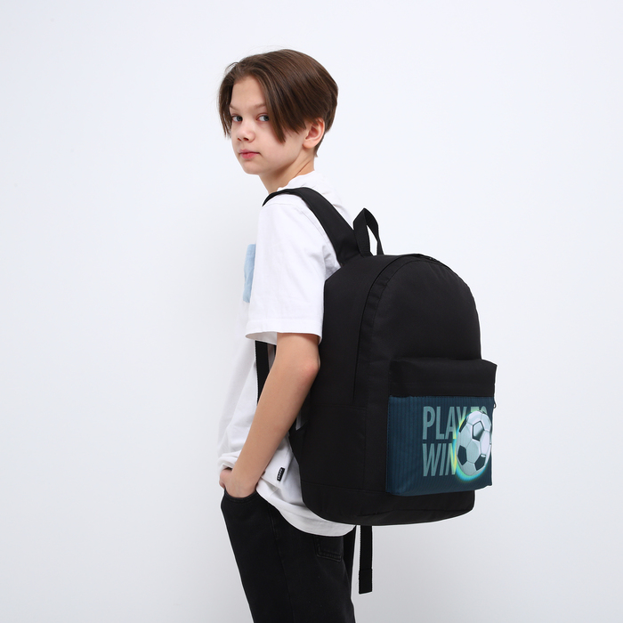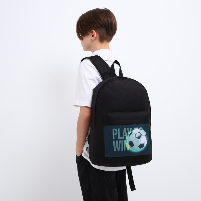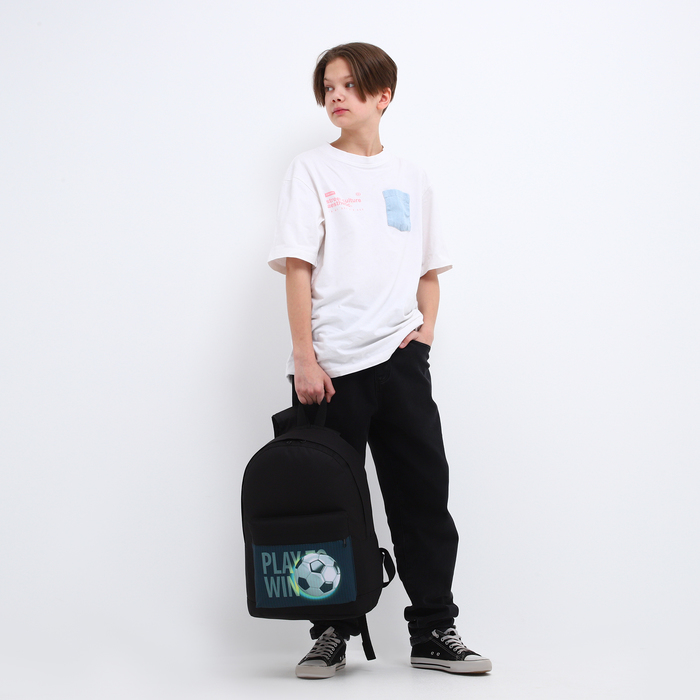 Рюкзак школьный детский для мальчика «Футбол», 33×13×37, отдел на молнии, карман, чёрный — Характеристики
