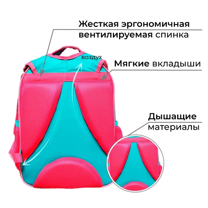 Регулируемые плечевые лямки "маечка" обеспечивают комфортную посадку ранца на спине ребенка.