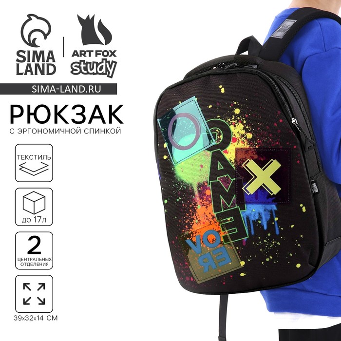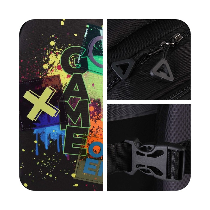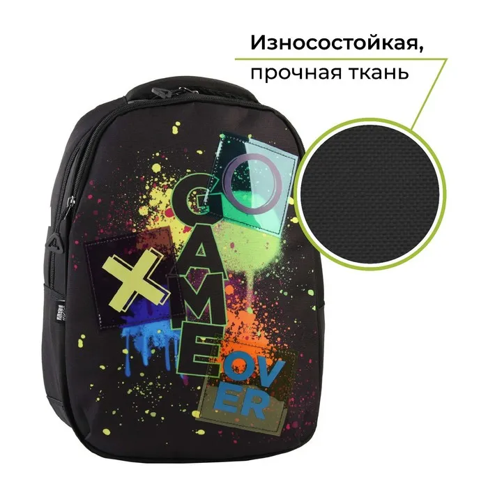 Рюкзак школьный, эргономичная спинка, 39×32×14 см, Game over — Характеристики