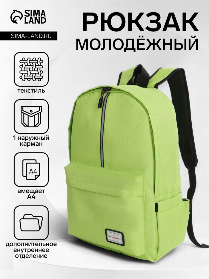 Рюкзак школьный FULLDORN на молнии, с карманами, однотонный, размер 30×10×41 см, голубой — Характеристики