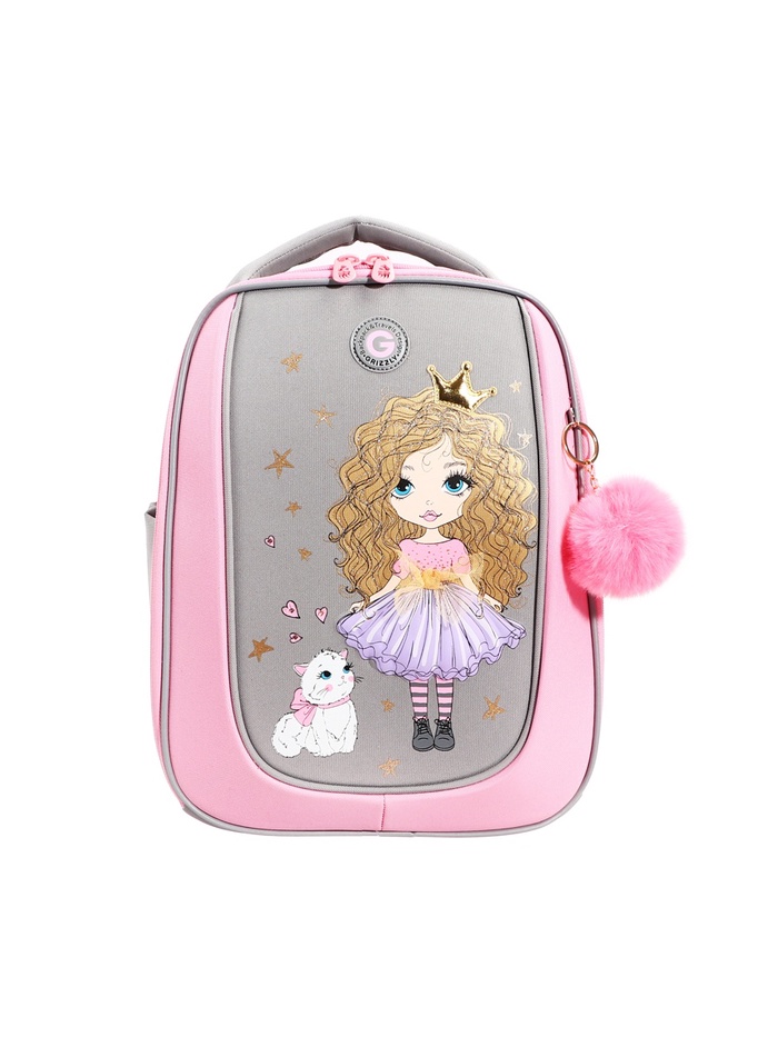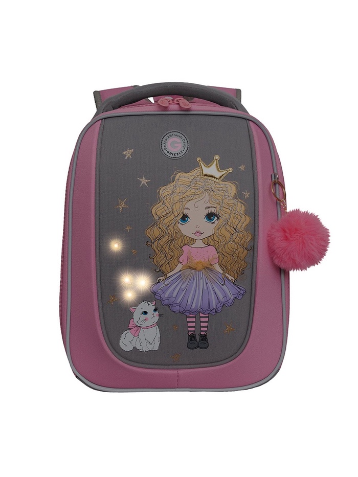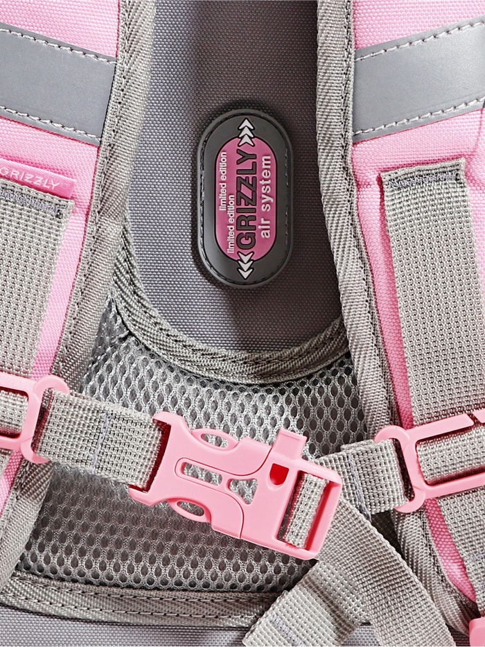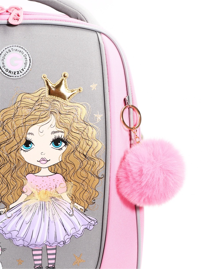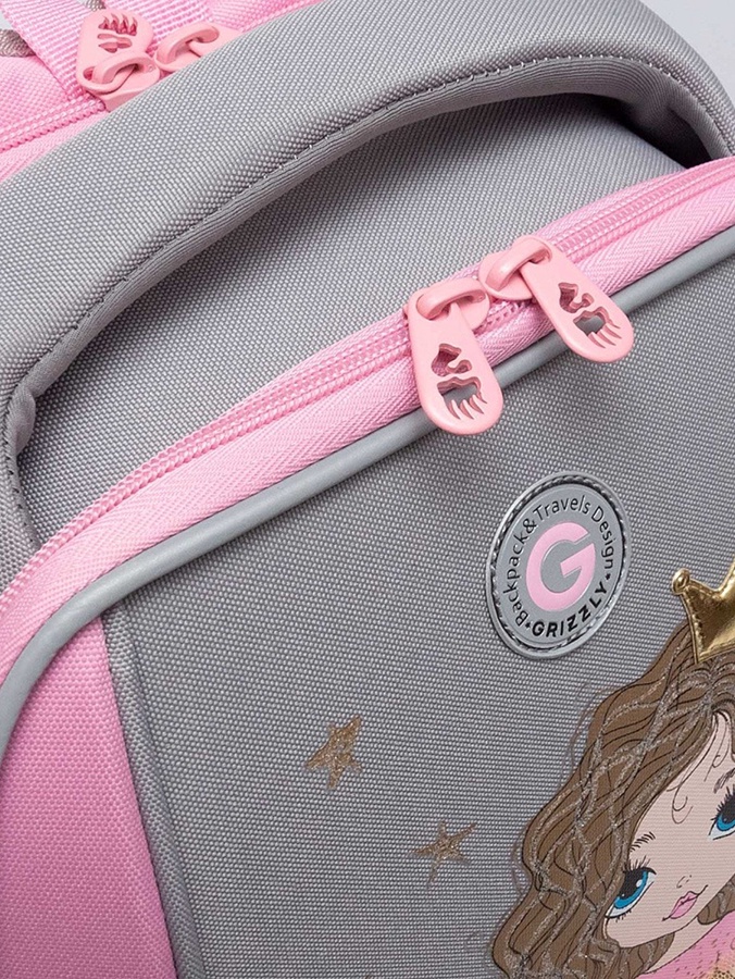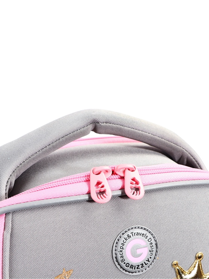 Рюкзак школьный Grizzly, 36×27×18 см, брелок, серый/розовый, RAf-592-1_3 — Характеристики